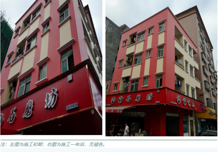 氟碳漆引入的氟元素電負性大,碳氟鍵能強,其強大的耐候性,能有效解決建筑物外墻涂層易發生開裂、粉化、剝落、變色等現象,為建筑物提供防護功能的同時保持其裝飾功能。