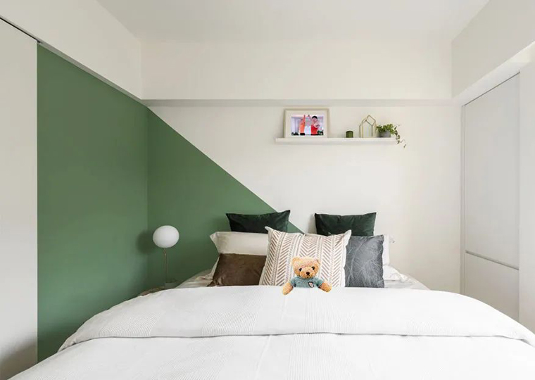灰綠色的明度和純度都較低,會為空間帶來低調(diào)、安寧的氣氛,綠色直接在視網(wǎng)膜上成像,是眼睛最容易看到的顏色,特別適合用在運動場所,有助于讓人放松又集中注意力。白色與灰綠相遇讓空間看起來具有生機。白色的牆面讓空間的布局顯得沒有那麼擁擠,雖然這樣的配色有明亮的光線配合最好,但是由于搭配本身就淺淺淡淡,所以放心!沒有一扇明窗照樣可以嘗試。