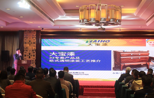 隨后,大寶漆經(jīng)銷事業(yè)部高顯峰課長、張珈銘專員、胡平平課長、鄧偉利專員分別對(duì)“三三專案”歐式涂裝、UV木器漆、水性木器漆及寶宮石相關(guān)產(chǎn)品內(nèi)容向大會(huì)作報(bào)告,其中胡平平課長所作“漆時(shí)代‘水’做主”的主題演講成為本次研討會(huì)的重點(diǎn)與亮點(diǎn)內(nèi)容。