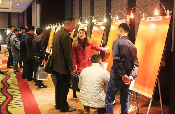 此外,與會(huì)者就大寶水性漆產(chǎn)品、寶宮石系列產(chǎn)品、歐式涂裝等產(chǎn)品工藝,提出自己的疑問,與專業(yè)人員進(jìn)行溝通交流,并就當(dāng)前的市場狀況等表達(dá)了自己的看法與見解。會(huì)議期間,還進(jìn)行了色板展示,供與會(huì)人員觀察了解歐式透明涂裝、水性木器漆、寶宮石等產(chǎn)品工藝的實(shí)際涂裝效果。