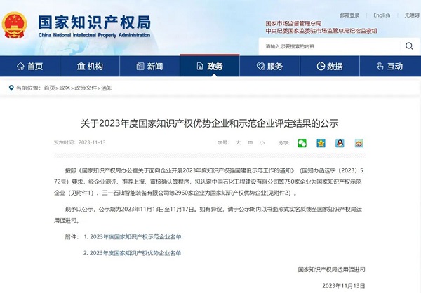 國家知識產權局公布2023年度國家知識產權優勢企業和示范企業評定結果,東莞大寶化工獲評“國家知識產權示范企業”。