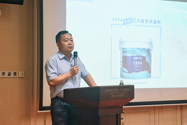 西南區王總監詳細介紹大寶藝術涂料施工工藝及效果展示。通過生動的案例和詳細的演示,與會者對新品的性能和優勢有了更深刻的認識。