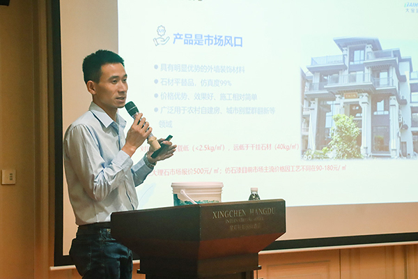 來自云南的龔向春分享了仿石漆市場推廣經驗。他結合云南地區的實際情況,詳細介紹了仿石漆在市場推廣中的策略、方法和取得的成果,為與會嘉賓提供了寶貴的市場推廣經驗和啟示。