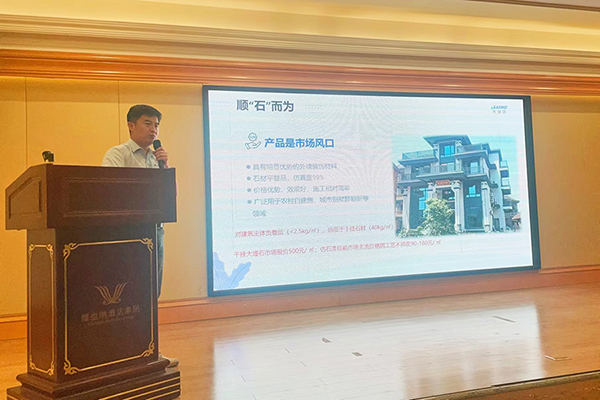 裝修漆中南區銷售總監卓杰分享仿石漆推廣策略。卓總監指出,江西省是全國仿石漆推廣較早且成效顯著的省份之一,并詳細講解仿石漆需求持續增長,特別是在高端裝飾市場和公共建筑項目中應用廣泛。推廣策略著重于產品定位、樣板實際效果展示、培訓支持、營銷活動、線上推廣,為與會者提供寶貴的推廣思路和啟發。