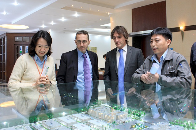 Barpimo公司人員先到大寶國際模型區進行了解,在業務部陳衛華副理的介紹下,參訪人員對大寶集團各企業體的廠區規劃及歷史發展有了一個初步的認識。隨后參訪人員對研發課、中央實驗室、國內市場展廳、色板中心和智能涂裝測試線等一一進行參觀。