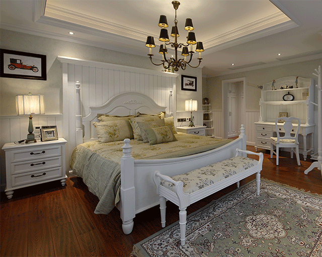 墻面設計上,新古典風格崇尚大面積使用古典歐式色彩的壁紙,配合經過提煉的歐式線條,使歐式不再是遙遠的過去,而是鮮活時尚的品味象征;減掉了復雜的歐式護墻板,使用了提煉過的石膏線勾勒出線框,把護墻板的形式簡化到極致。此外,新古典風格家居也崇尚使用優質環保的高檔藝術壁材,如大寶L’opera樓貝進口藝術涂料,來營造個性萬千且高貴典雅的空間氛圍。
