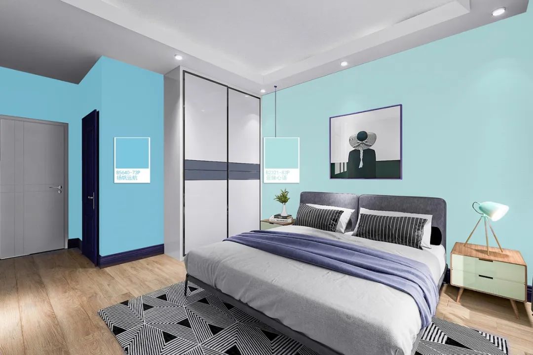 在白色空間加入一面粉綠色系的墻面,建立鎮定與舒緩的空間調性,能獲得放松與自在,打造生氣蓬勃,清爽日常的居家配色。藍緣心語介于藍與綠的中間色,有著藍色的沁涼感及綠色的生命力,不像黑白色過于單調,也不像熒光色那般刺眼的令人無措,配上淺木色地板增加整體空間的溫度,淺淺的綠適度的增加空間色彩,是多數人都能接受的居家配色喔!
