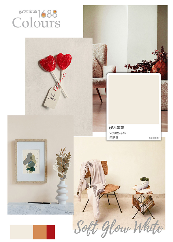 搭配建議:擁有極強的兼容性,可與任何色彩和諧搭配;尤其能中和與提亮冷色調的金屬或家具,為空間注入一抹溫柔。