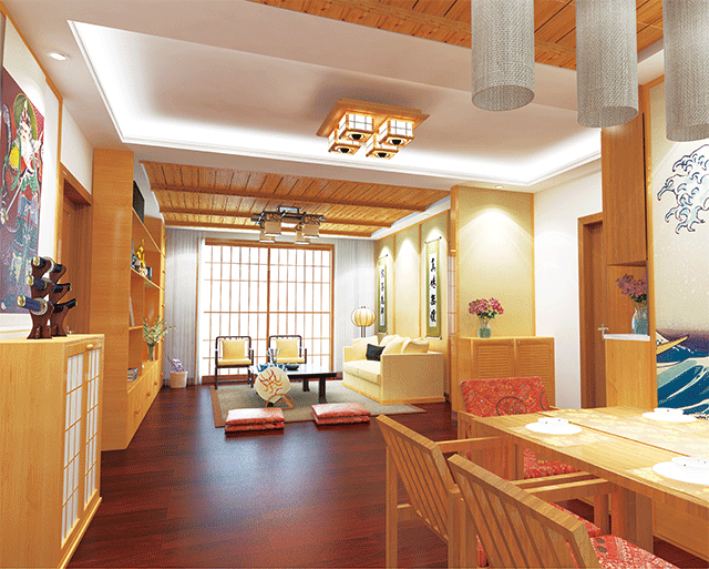 榻榻米是日式裝修中最常見的元素,看似簡單,但實用功能很強,把它收起來,就出現了一個活動空間,晚上鋪上被子就是床;同時,它的隔熱、透氣性強,平坦光滑、草質柔韌、色澤淡綠、散發 自然清香;用其鋪設的房間,隔音、隔熱、持久耐用、搬運方便、富麗華貴,盡顯異國情調;而且榻榻米可在最小的范圍內,展示最大的空間。